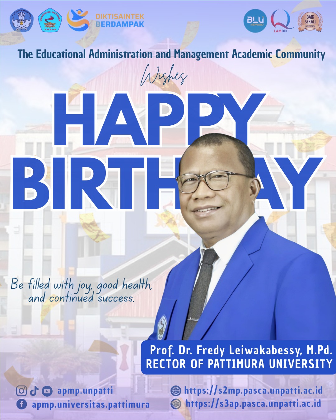 Happy Birthday to Prof. Dr. Fredy Leiwakabessy, M.Pd., Rector of Universitas Pattimura πŸŽ‰